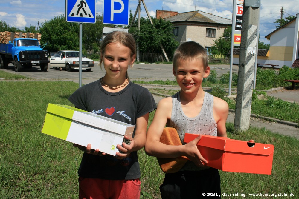 Stolin und im Nachbardorf Mankovichi an Kinder ausgeteilt, die wir